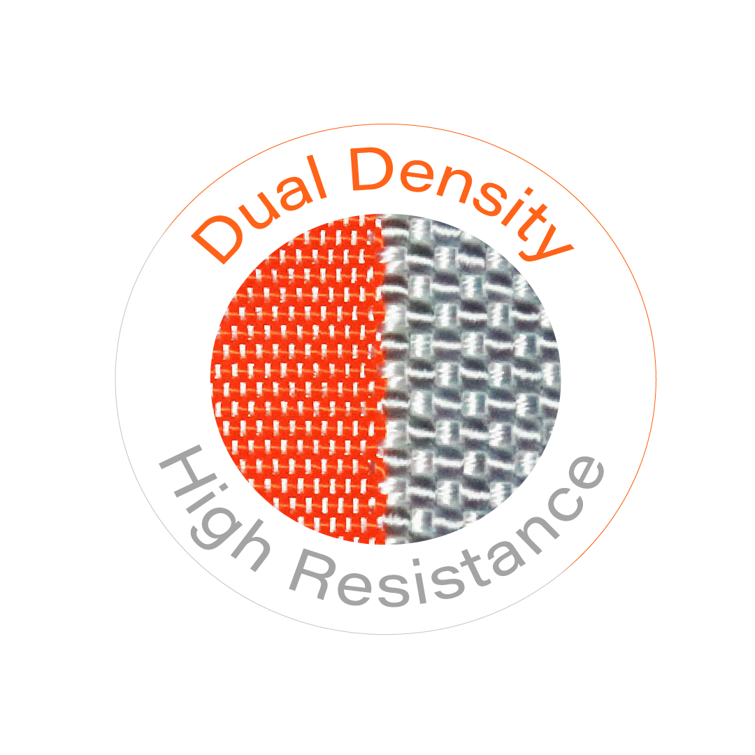 特許取得のヒートカット技術により、縫い目のないシームレス構造を採用。さらに、一般的なポリエステルの約20倍の強度を持つ特殊強化ポリエステル繊維を使用することで、従来品の約2倍となる圧倒的な耐久性を実現しました。破れや摩耗にも極めて強く、過酷な路面状況でも長く安心して使用できます。