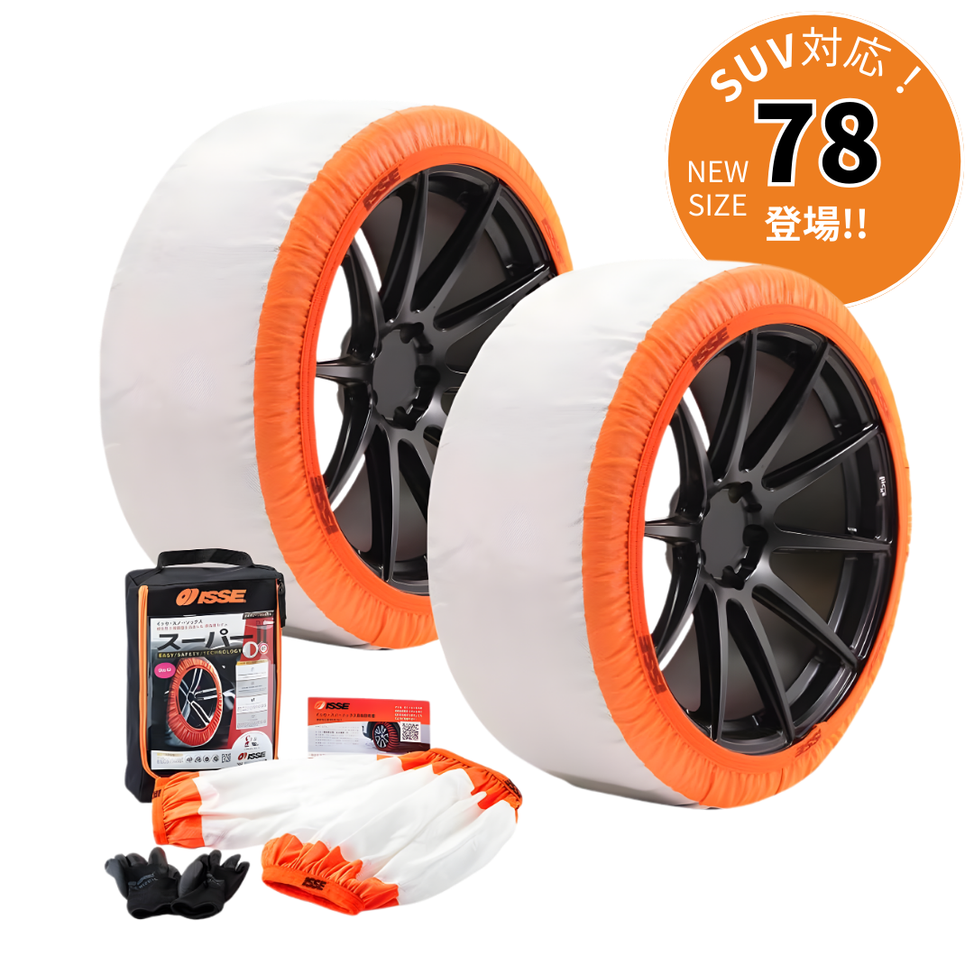 イッセ・スノーソックス史上最も優れた布製タイヤチェーン。デザインと機能の再設計によりかつてないほどの耐久性と制動性を実現しました。これにまでない軽量さと静音性を備えた、全く新しいタイヤチェーン時代の幕開けです。
