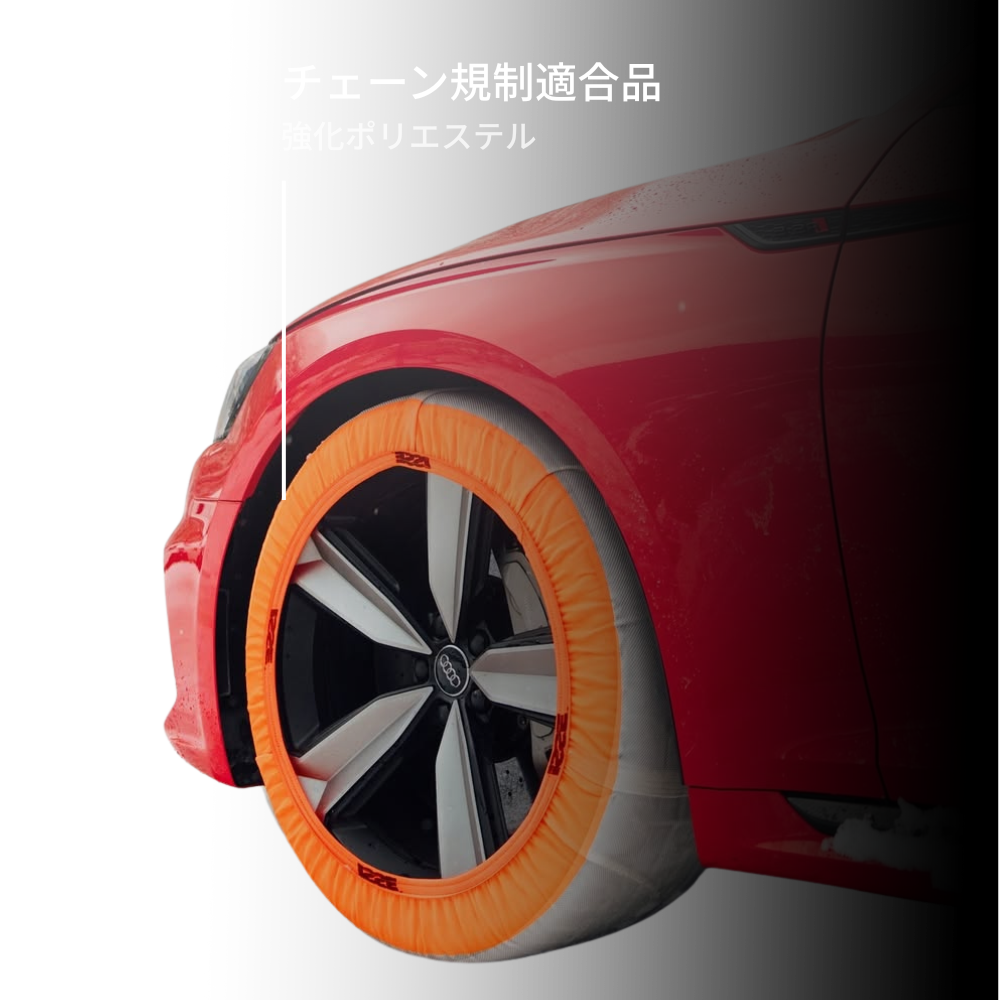 従来の金属チェーンに代わる新しい選択肢として、車両や路面へのダメージを抑えつつ、優れたグリップ力と走行安定性を発揮します。万が一の積雪やチェーン規制時にも対応できる、信頼性の高い走行補助アイテムです。